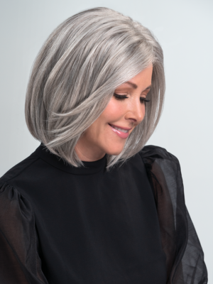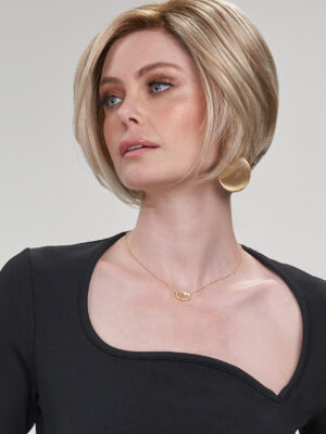 Combining the cooling ventilation benefit of an open cap and the natural hair growth look of a lace front, Kristen scores high in comfort and style. The face-framing bob has never looked this chic. | |