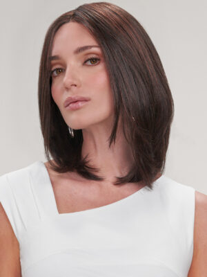 Sleek, modern bob. This lace front wig combines a 100% hand-tied cap with a monofilament top allowing each strand of hair to swivel freely, just like natural hair. Victoria's tresses create a flattering angled silhouette. | |